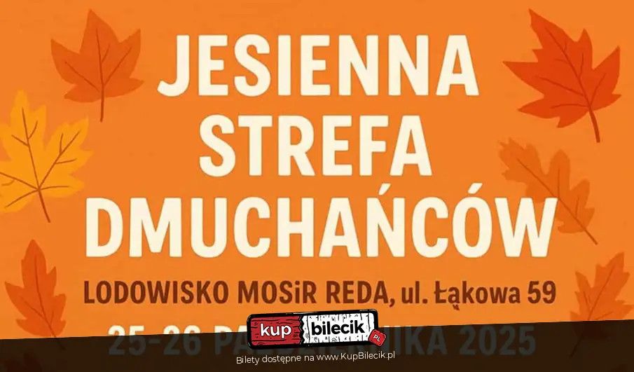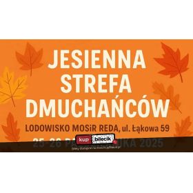 | Jesienna Strefa Dmuchańcówdodano 2025-10-15 19:13:30 Sezon letni się powoli kończy, ale to nie oznacza koniec zabawy na dmuchańcach! Zapraszamy wszystkie dzieci i rodziny do pełnej radości Jesiennej Strefy Dmuchańców w Redzie, gdzie czeka moc atrakcji i zabawy pod dachem! Co przygotowaliśmy? Jesień nie musi być nudna - spędźcie ją razem z nami, w rytmie świetnej zabawy i rodzinnych atrakcji! Lodowisko MOSiR Reda, ul. Łąkowa 59. Strefa Dmuchańców artyści: Różni artyściZapraszamy wszystkie dzieci i rodziny do pełnej radości Strefy Dmuchańców, gdzie czeka moc atrakcji i zabawy pod dachem! Bilety do nabycia na: KupBilecik.pl |